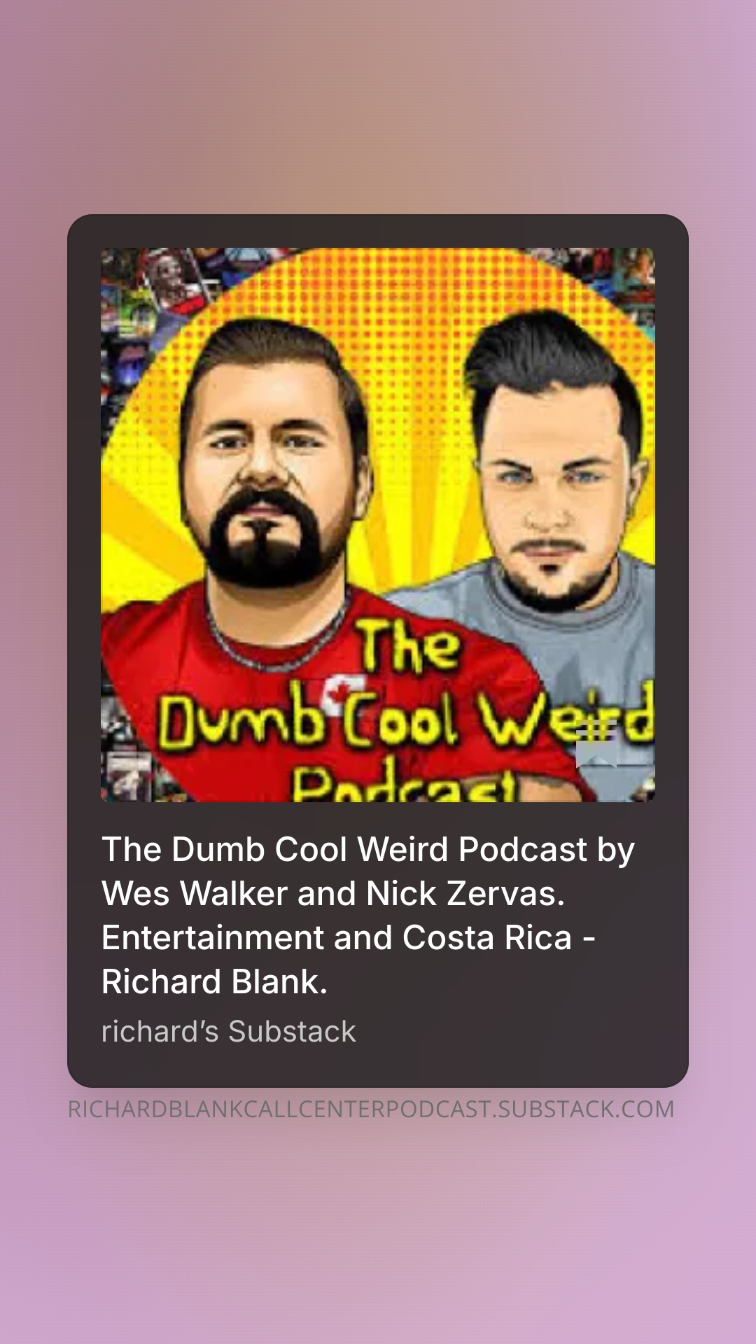The Dumb Cool Weird Podcast by Wes Walker and Nick Zervas. Entertainment and Costa Rica Richard Blan